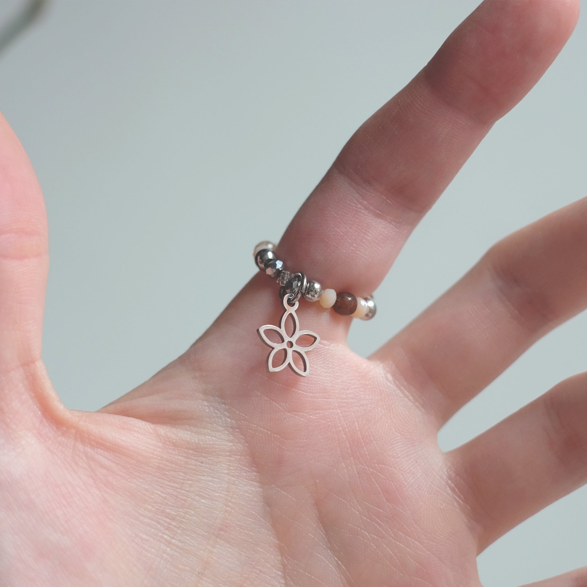 Bague en acier inoxydable avec agate mousse