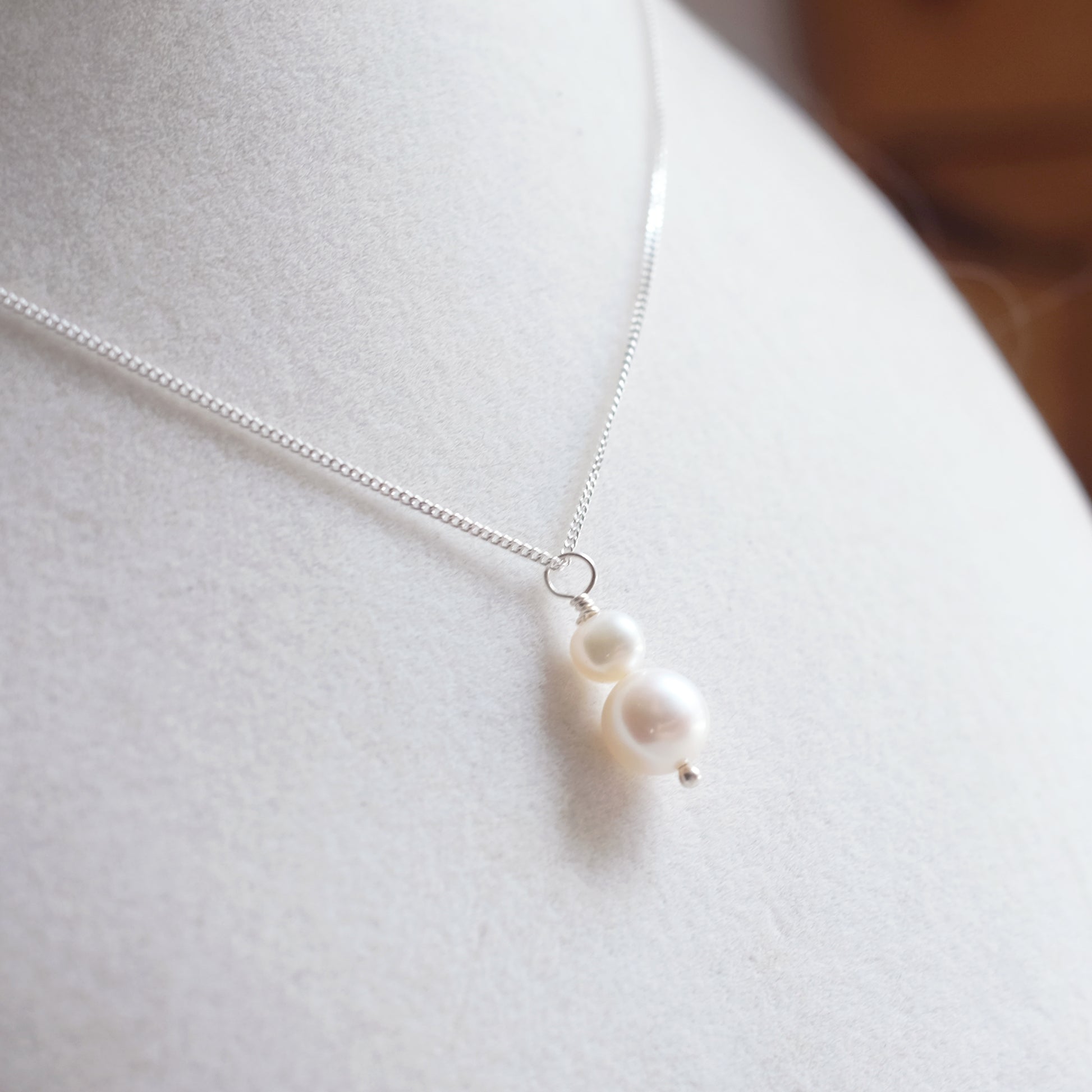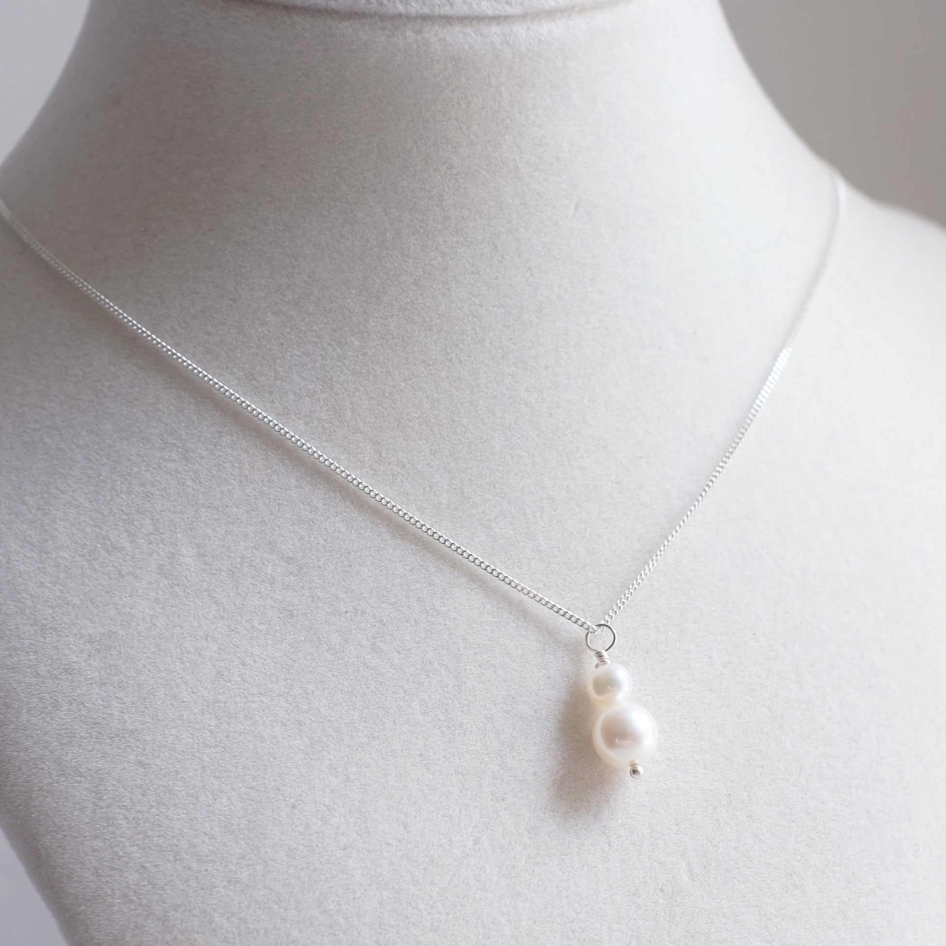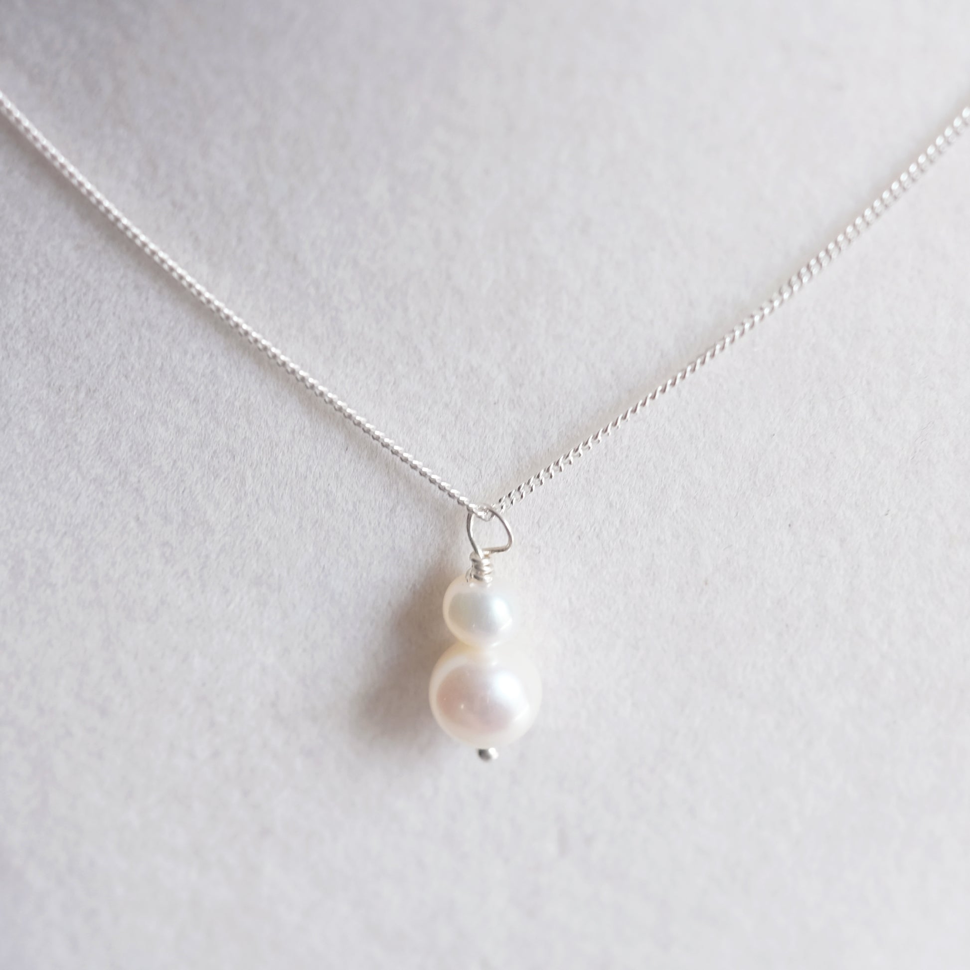 Collier en argent sterling composé de deux perles d'eau douce blanches