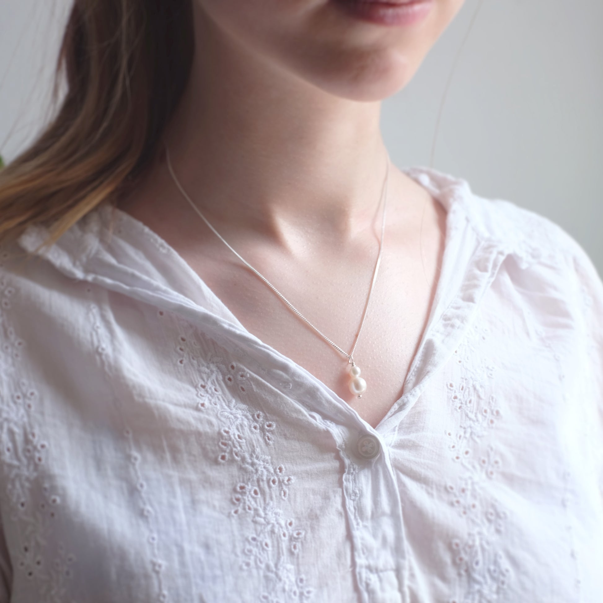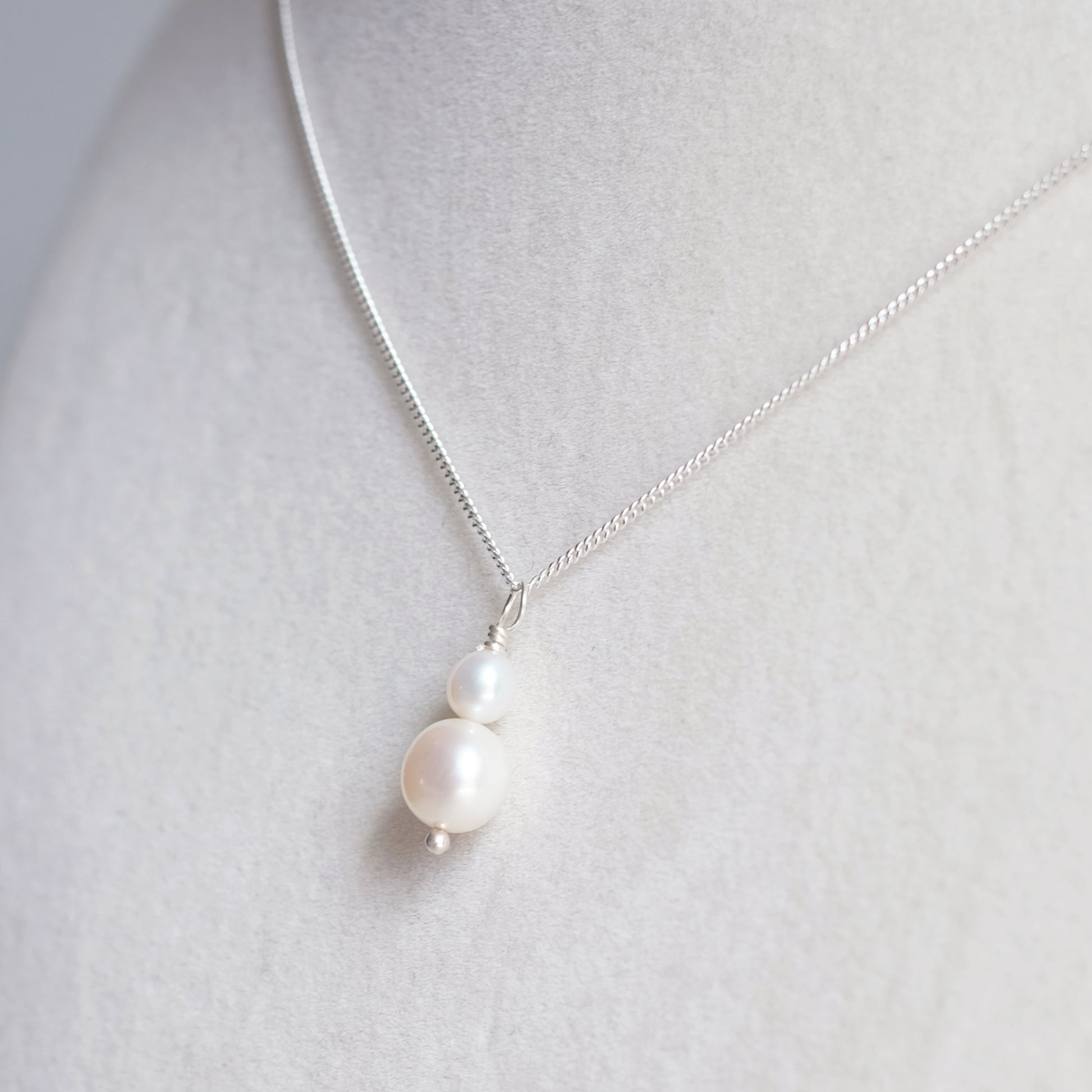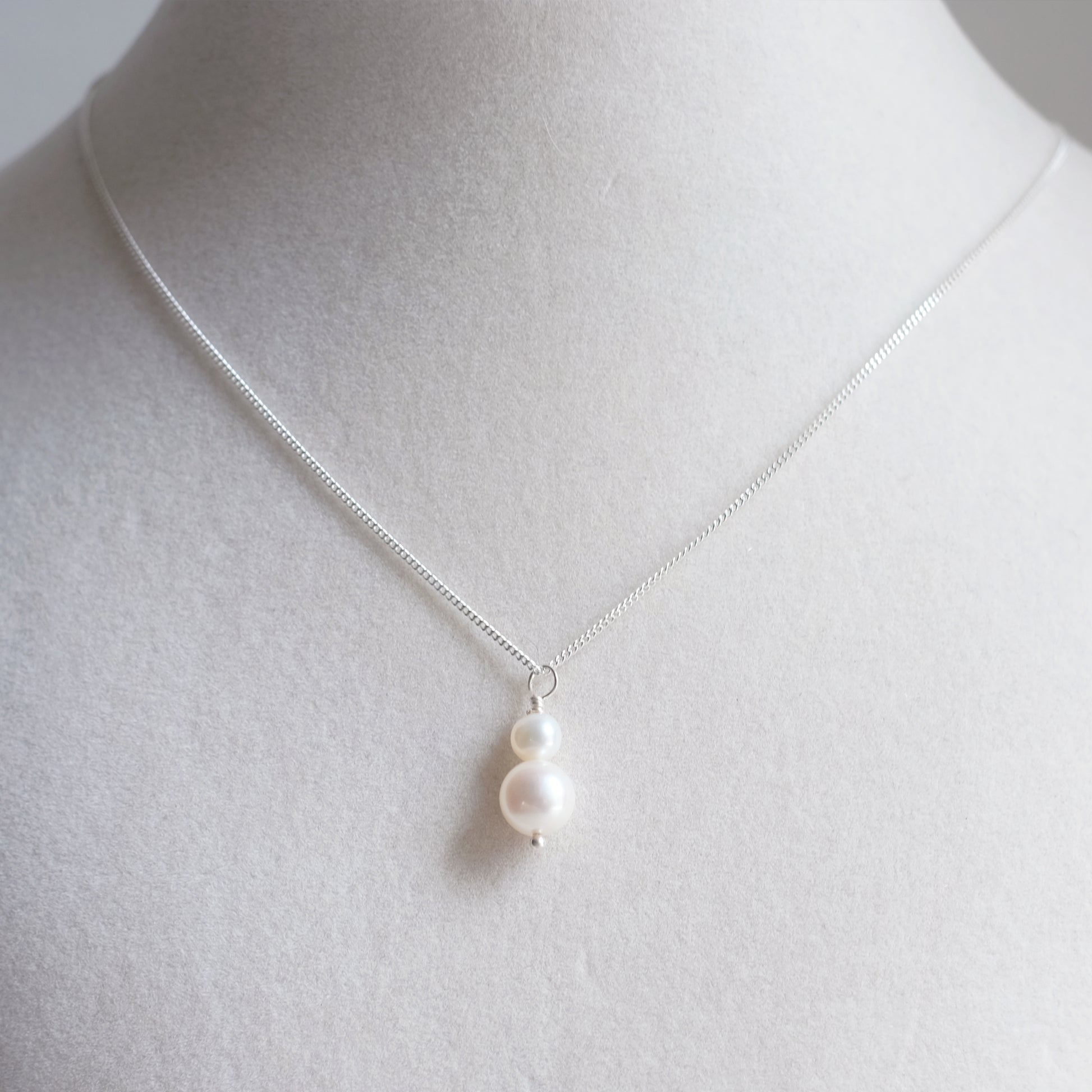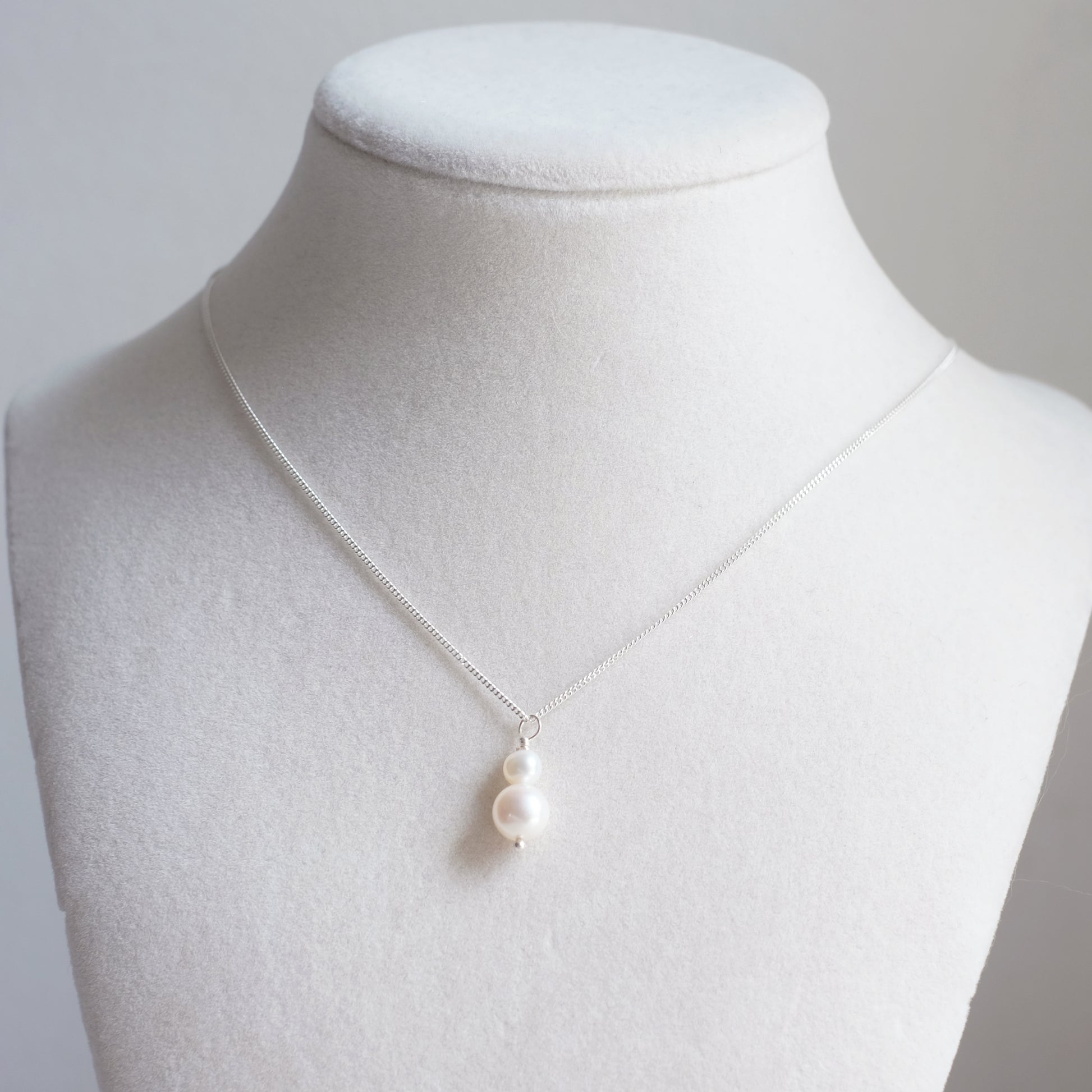 Collier en argent sterling composé de deux perles d'eau douce blanches