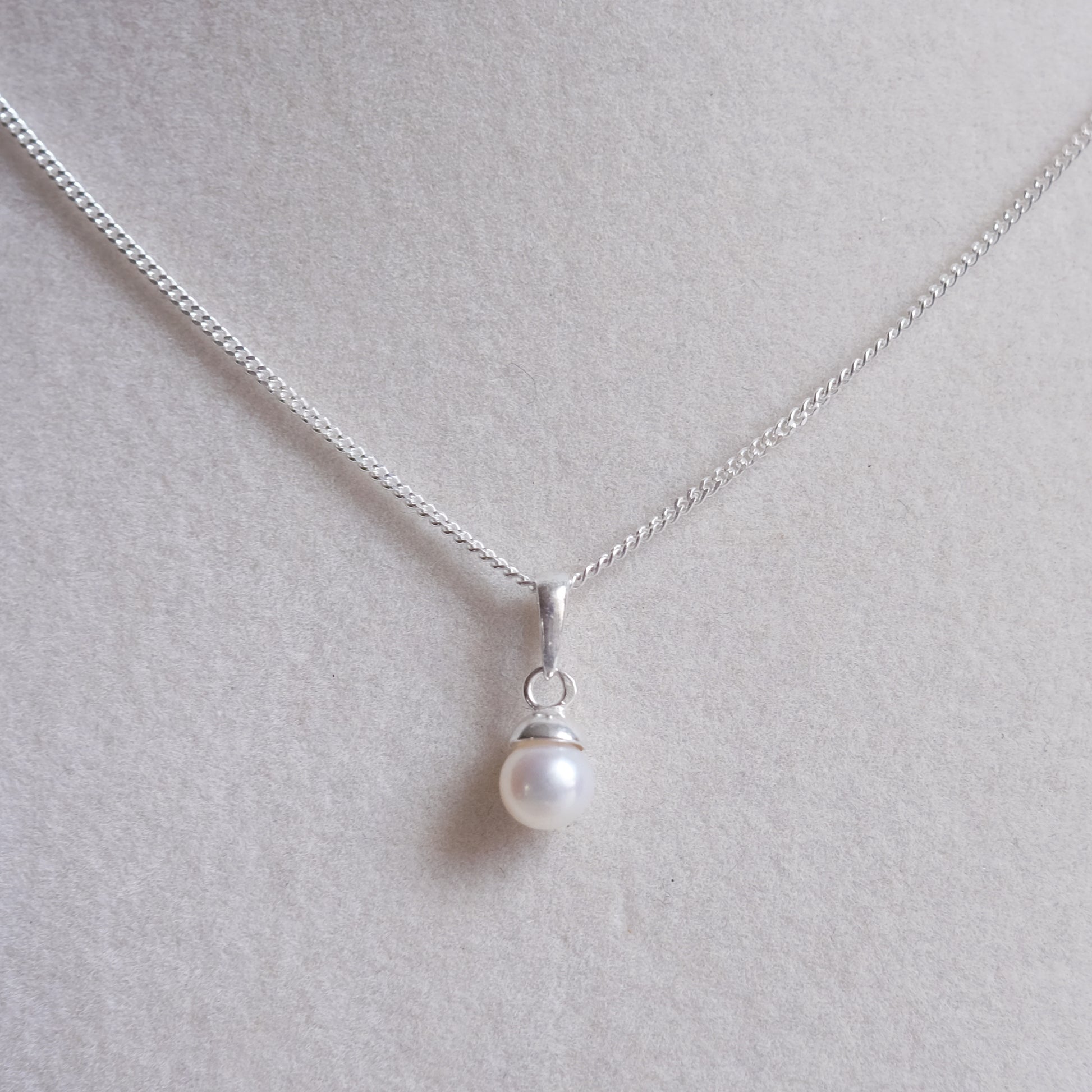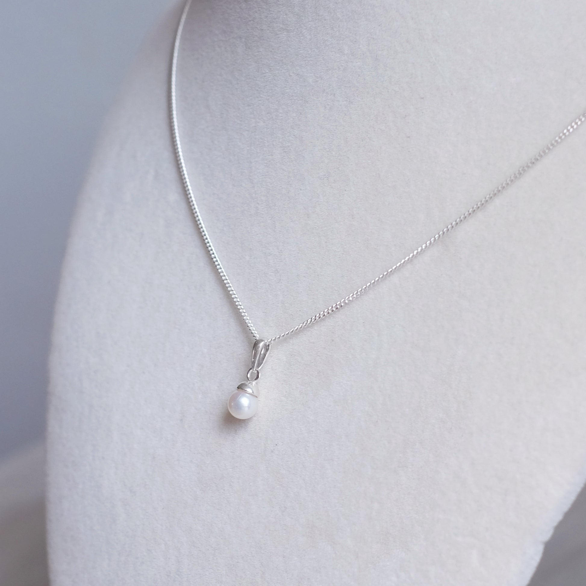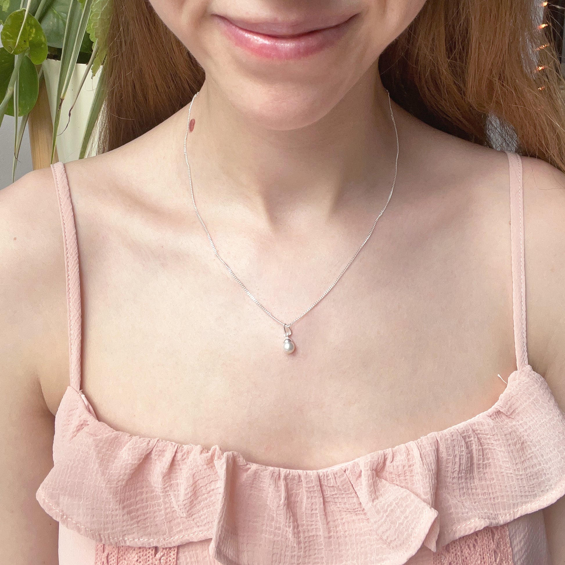 Collier en argent sterling composé d'une perle d'eau douce blanche ronde avec bélière
