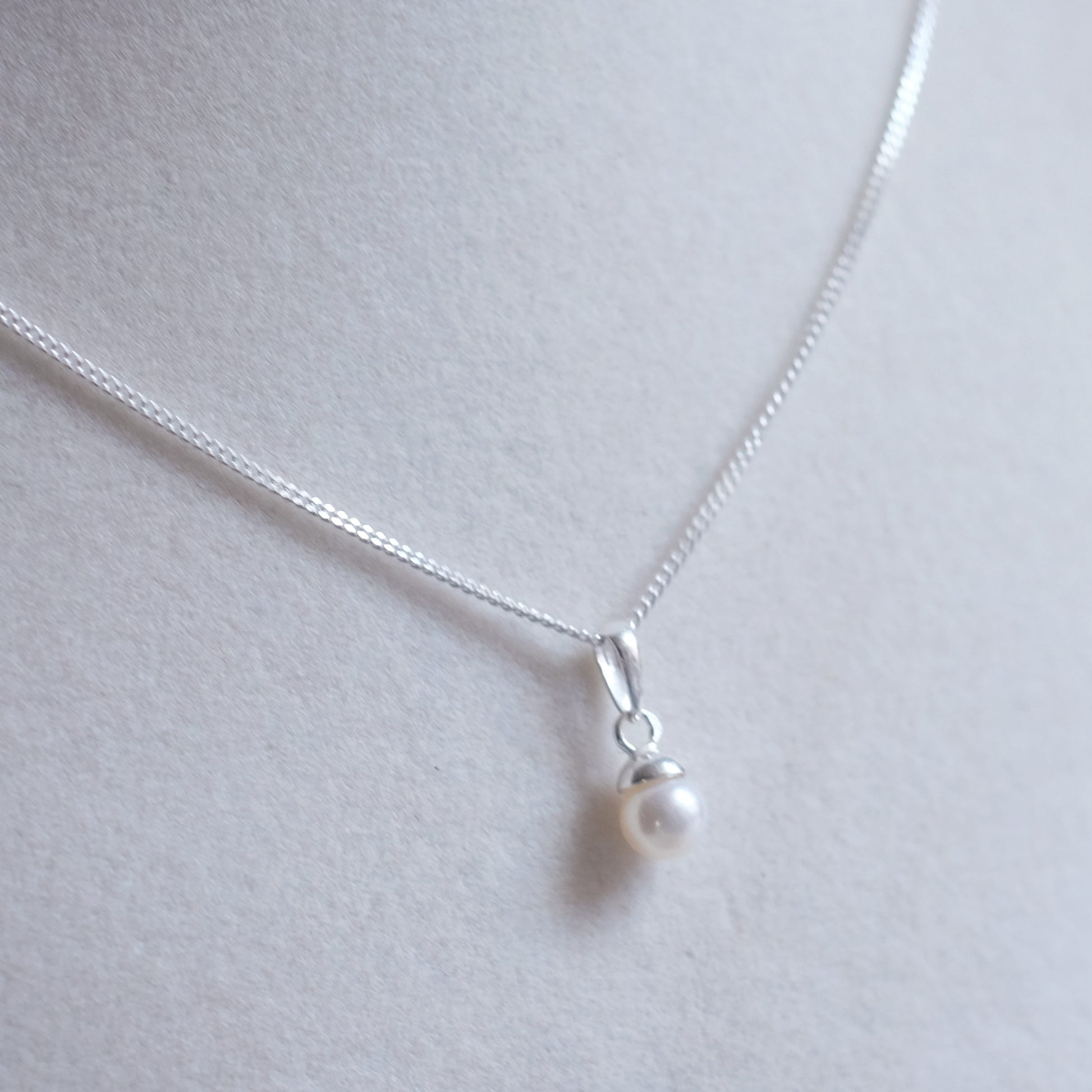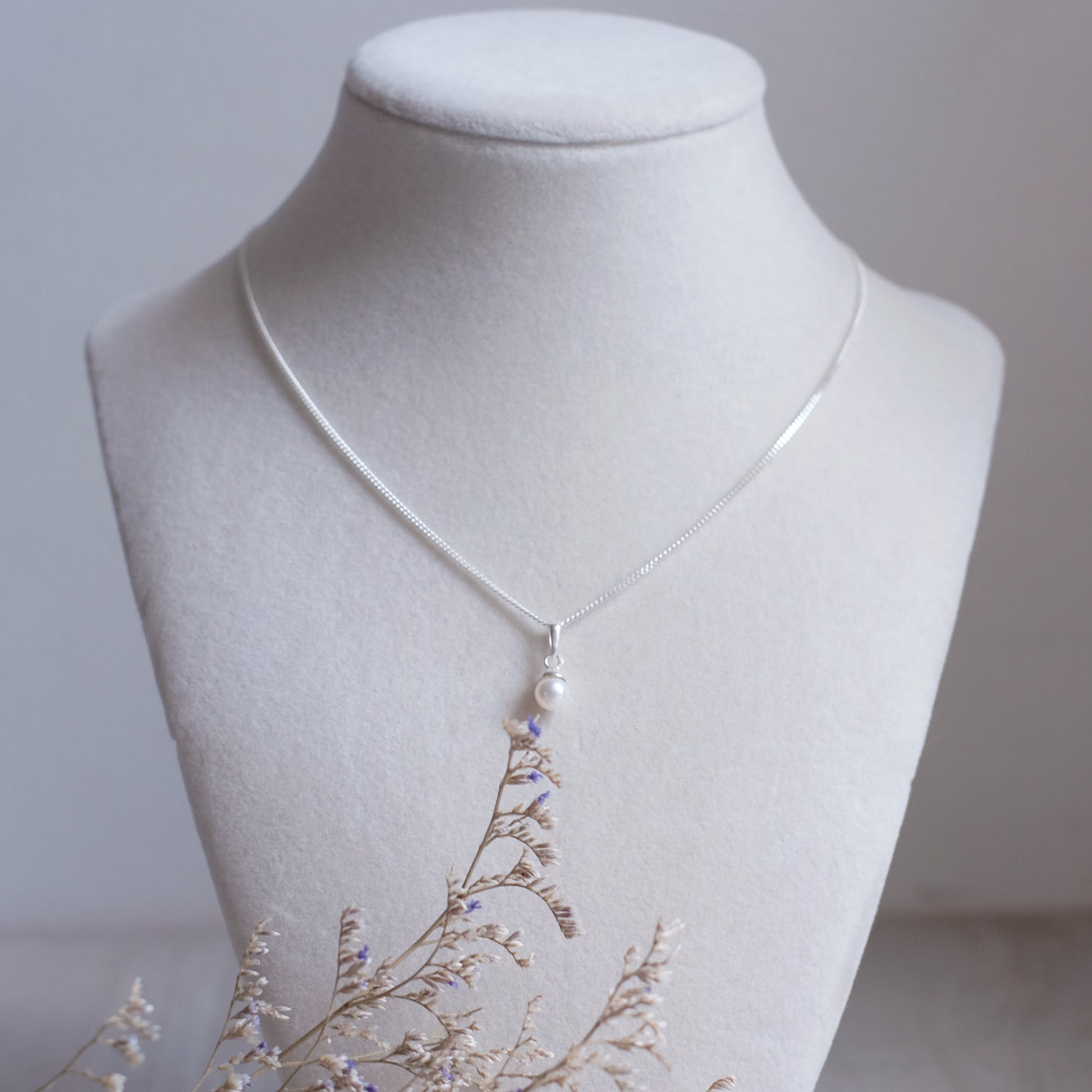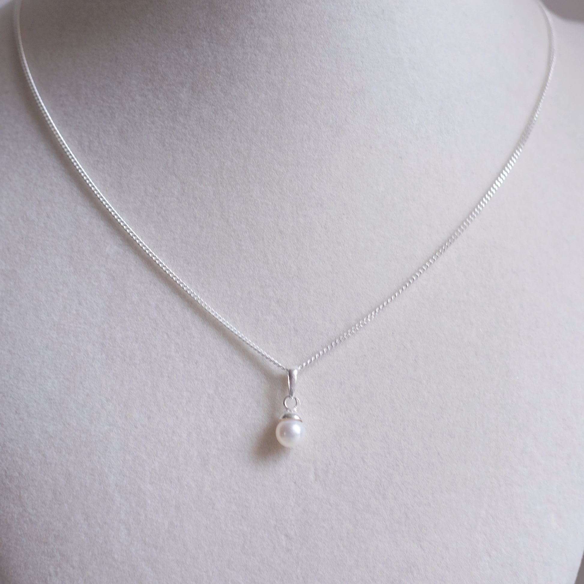 Collier en argent sterling composé d'une perle d'eau douce blanche ronde avec bélière