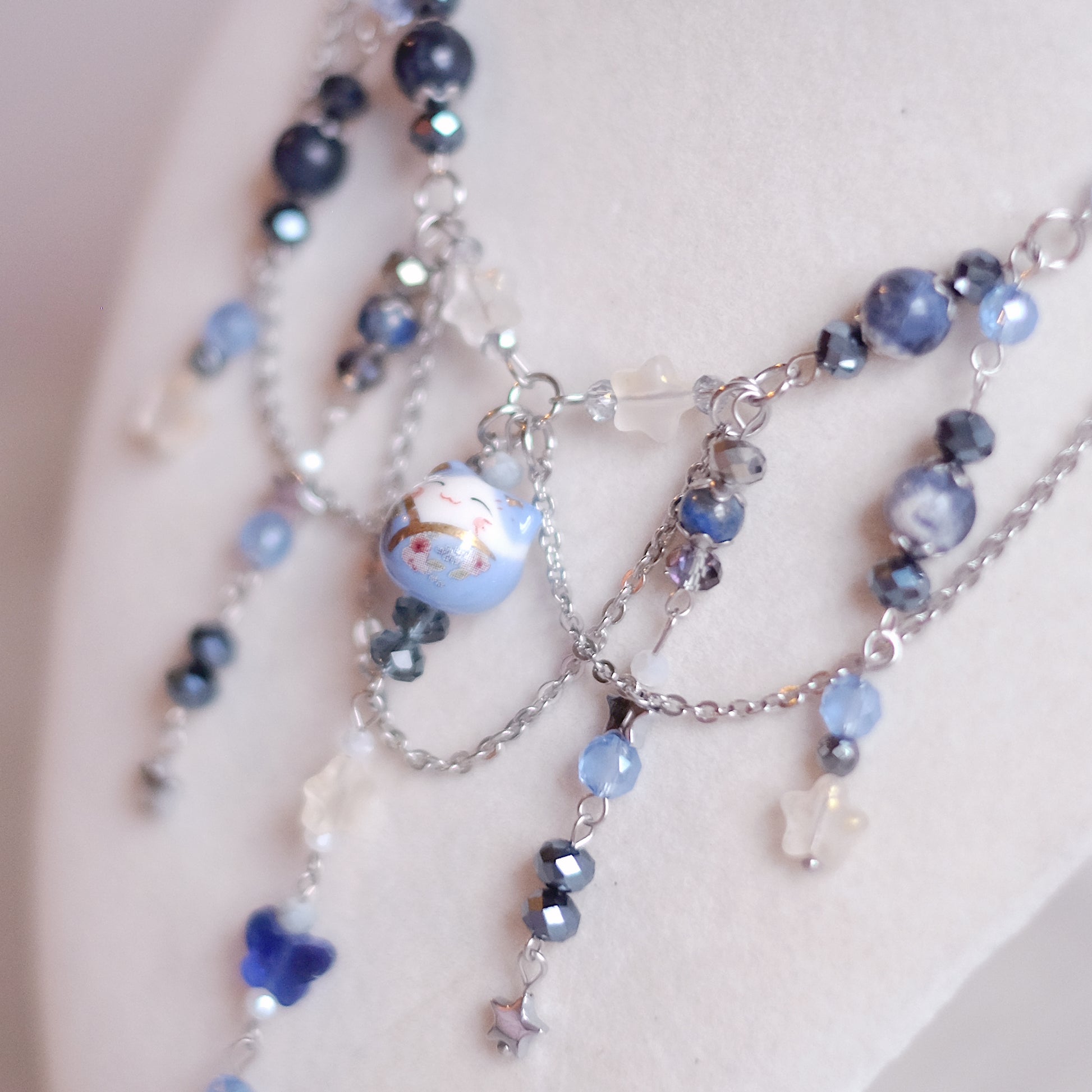 Collier parure Chat Chanceux en bleu