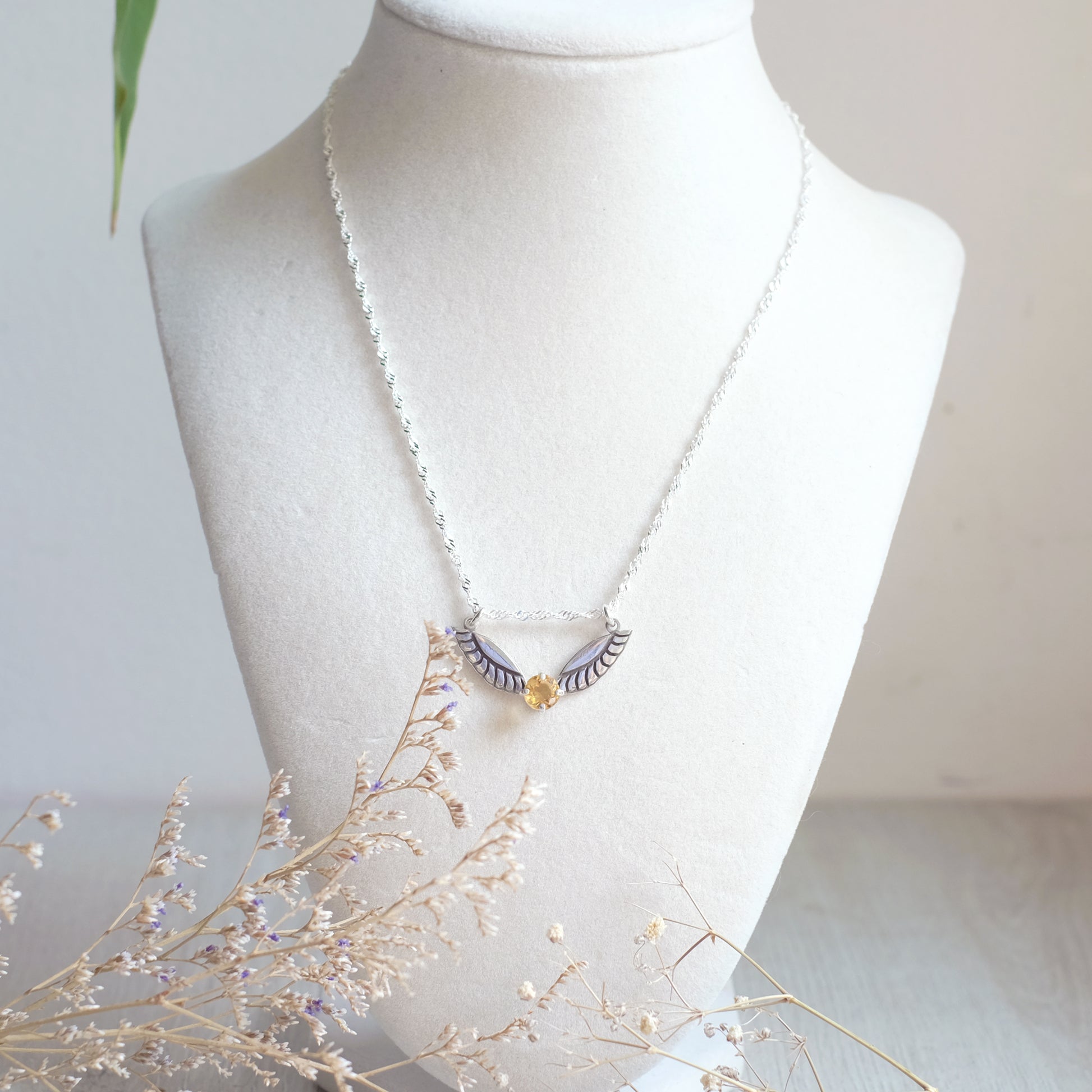 Le métal utilisé pour ce bijoux est l’argent sterling oxydé (parties foncées). Il est orné d’une citrine. Il y a deux tailles de chaînes disponibles 16 pouces et 18 pouces. S’il vous plaît m’écrire quelle longueur vous voulez ! Si ce n’est pas mentionné, je mettrai une chaîne 18 pouces par défaut. Le pendentif est fabriqué à Montréal avec soin et beaucoup d’amour ❤ !
