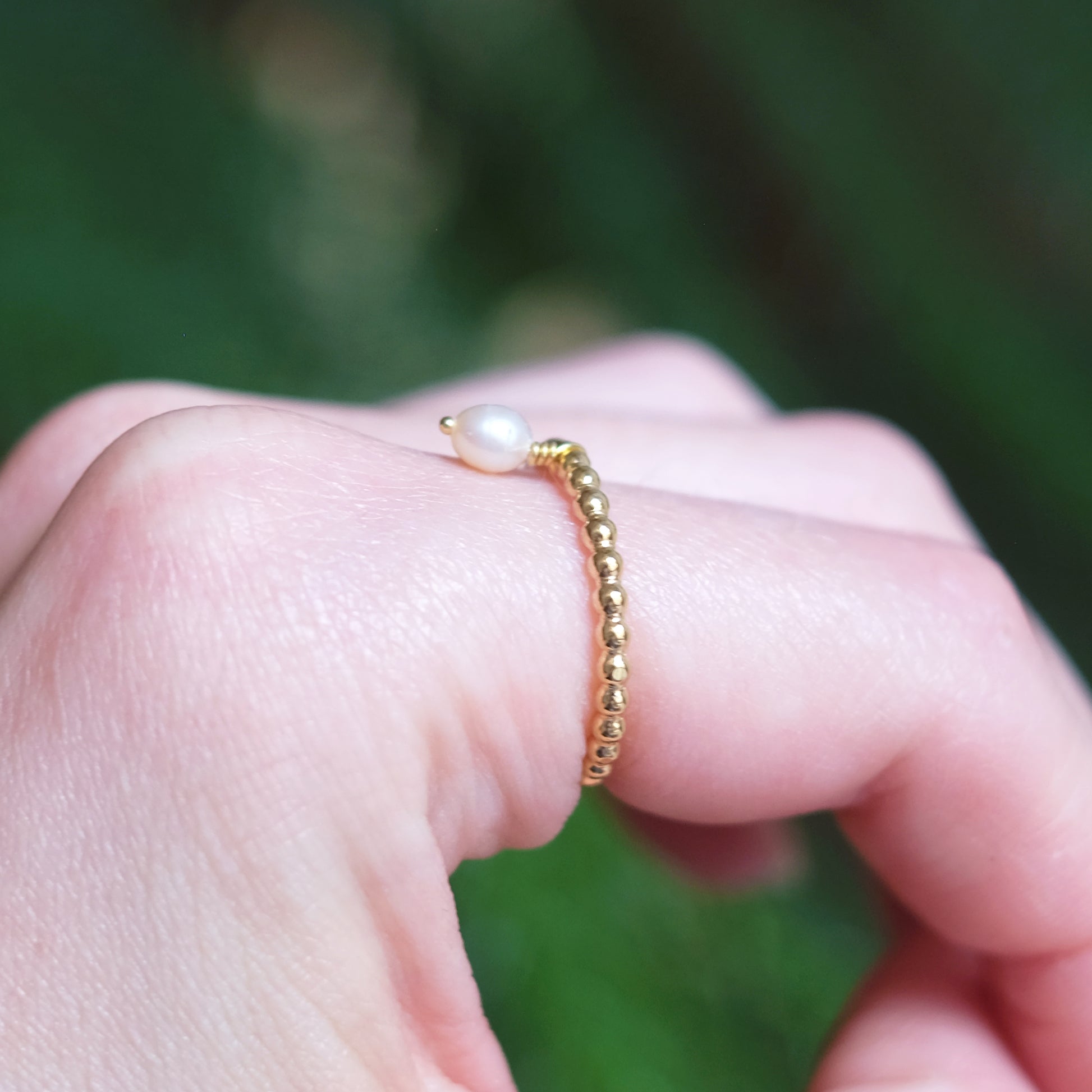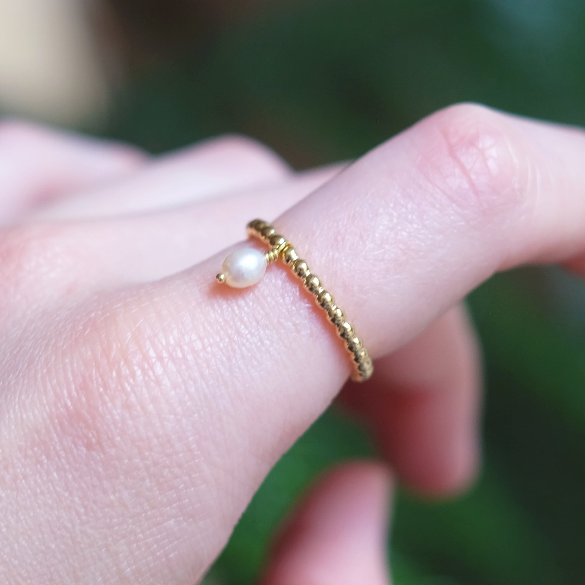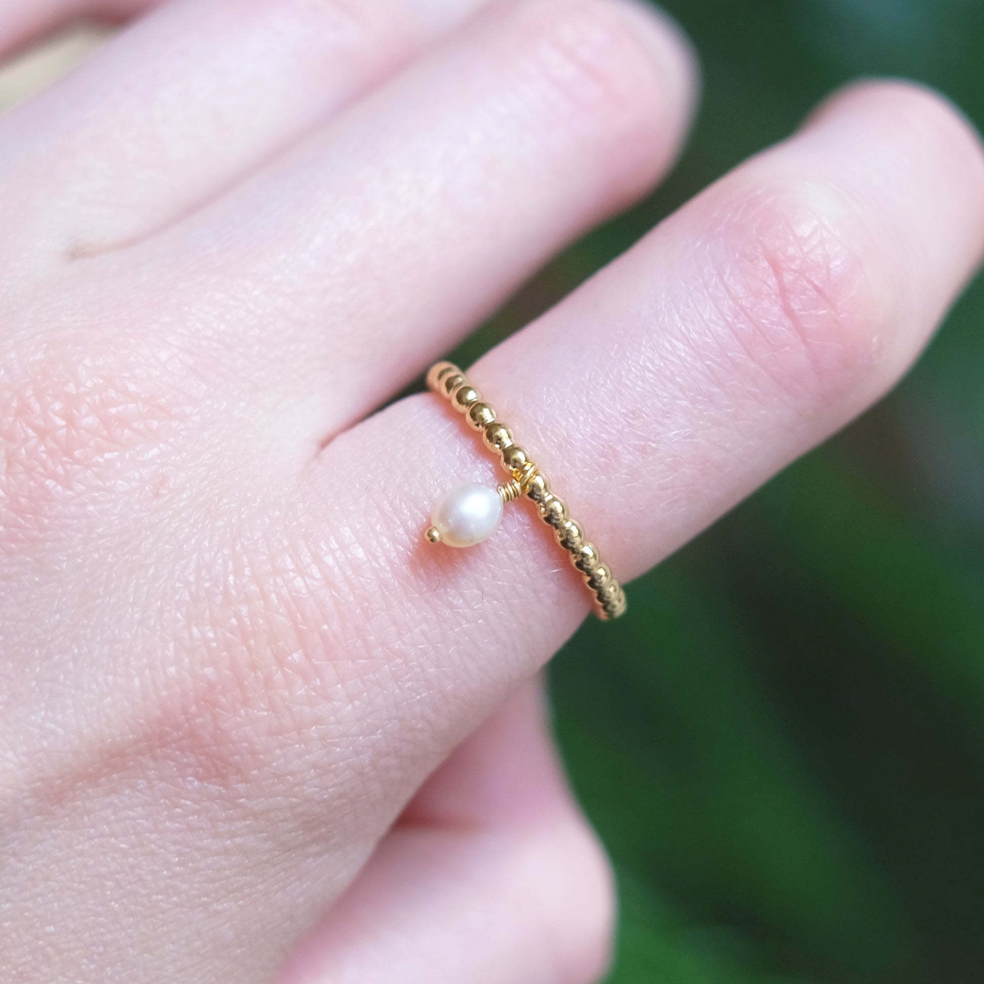 Ajoutez une touche de sophistication et de personnalité à votre style quotidien avec cette nouvelle bague empilable, en or vermeil 14K. Elle possède un pendentif avec une perle naturelle.