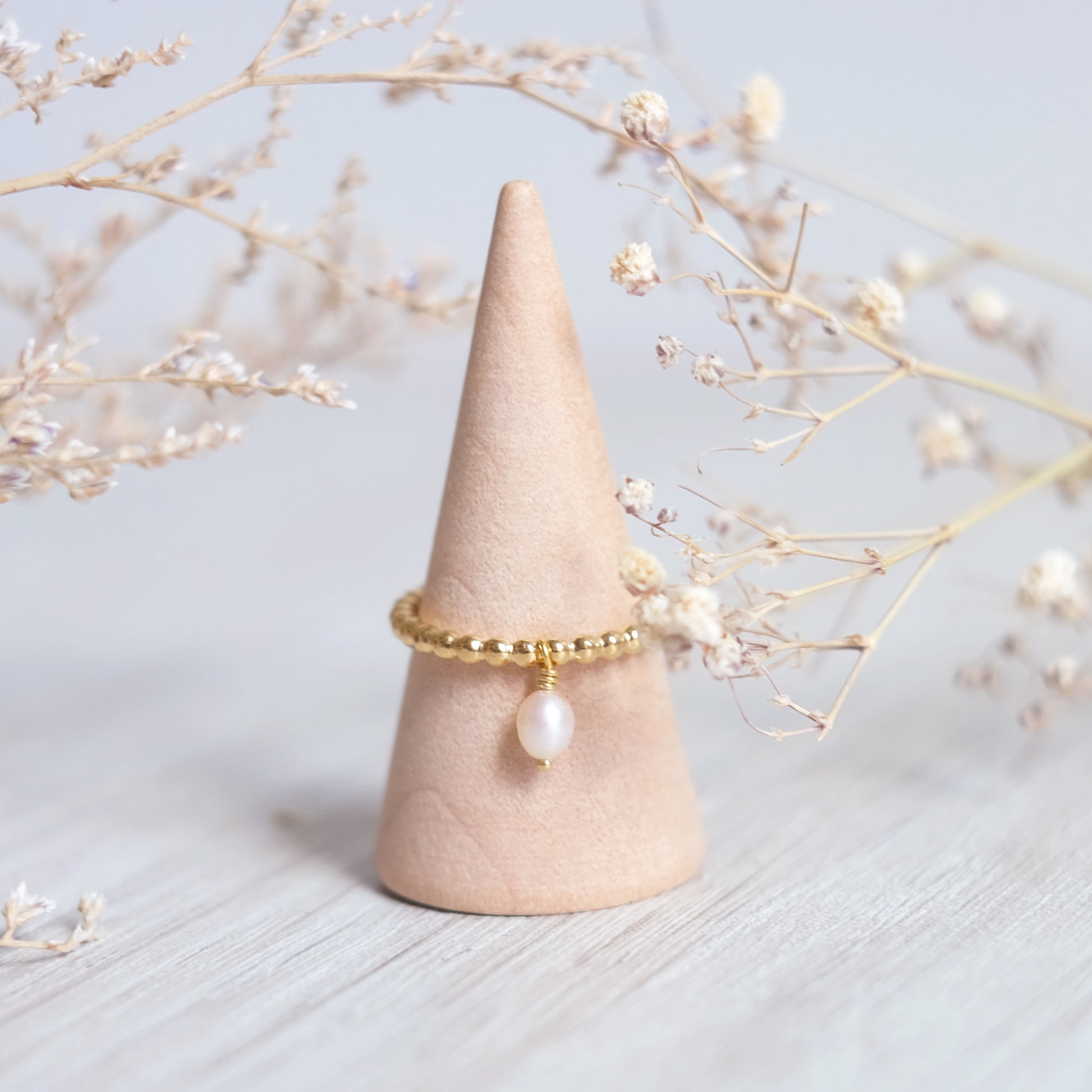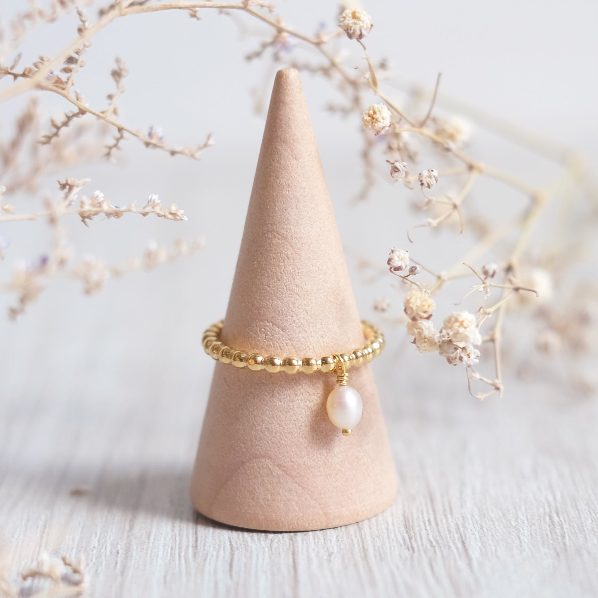 Jonc perlé en or vermeil 14K, blanc crème