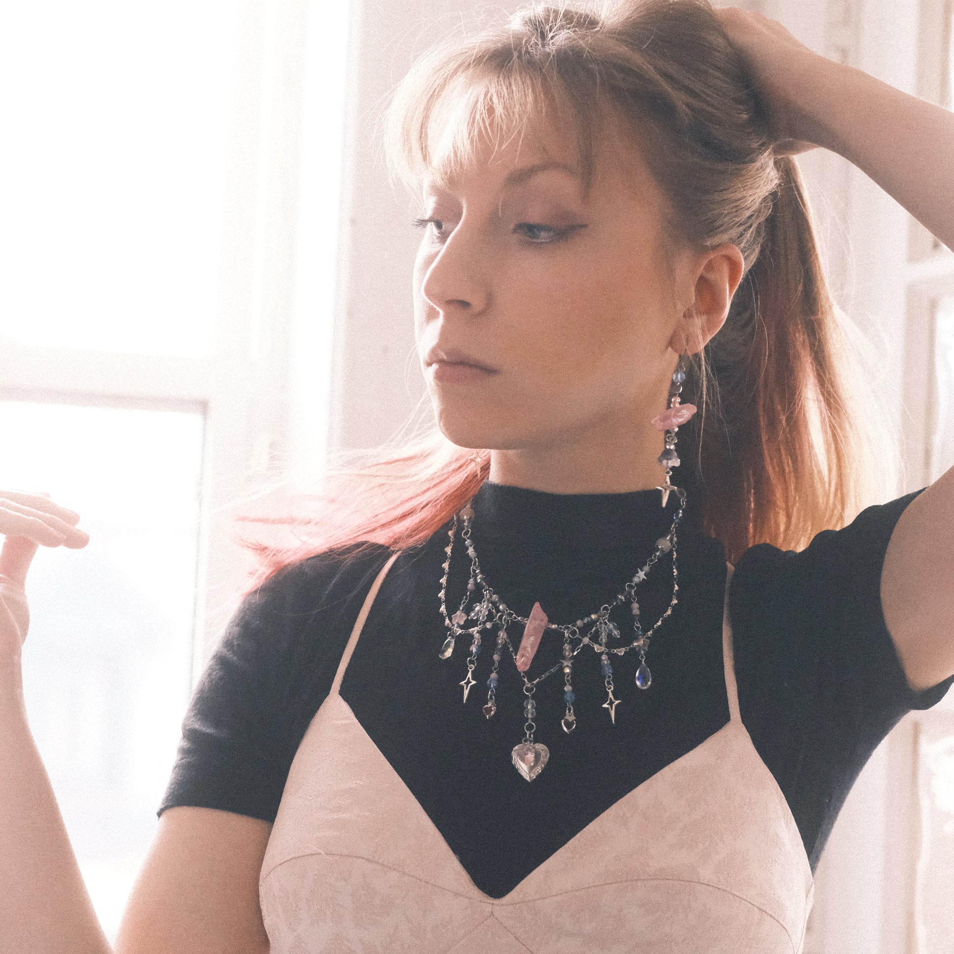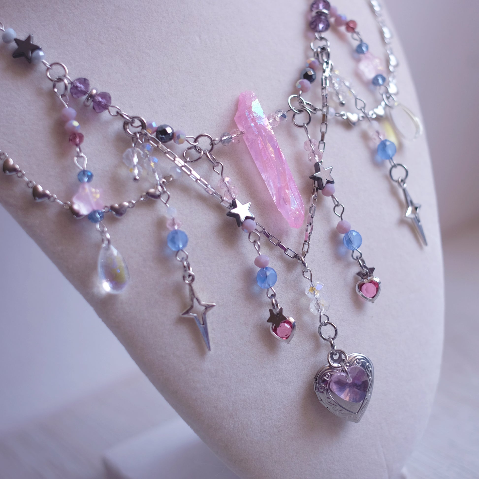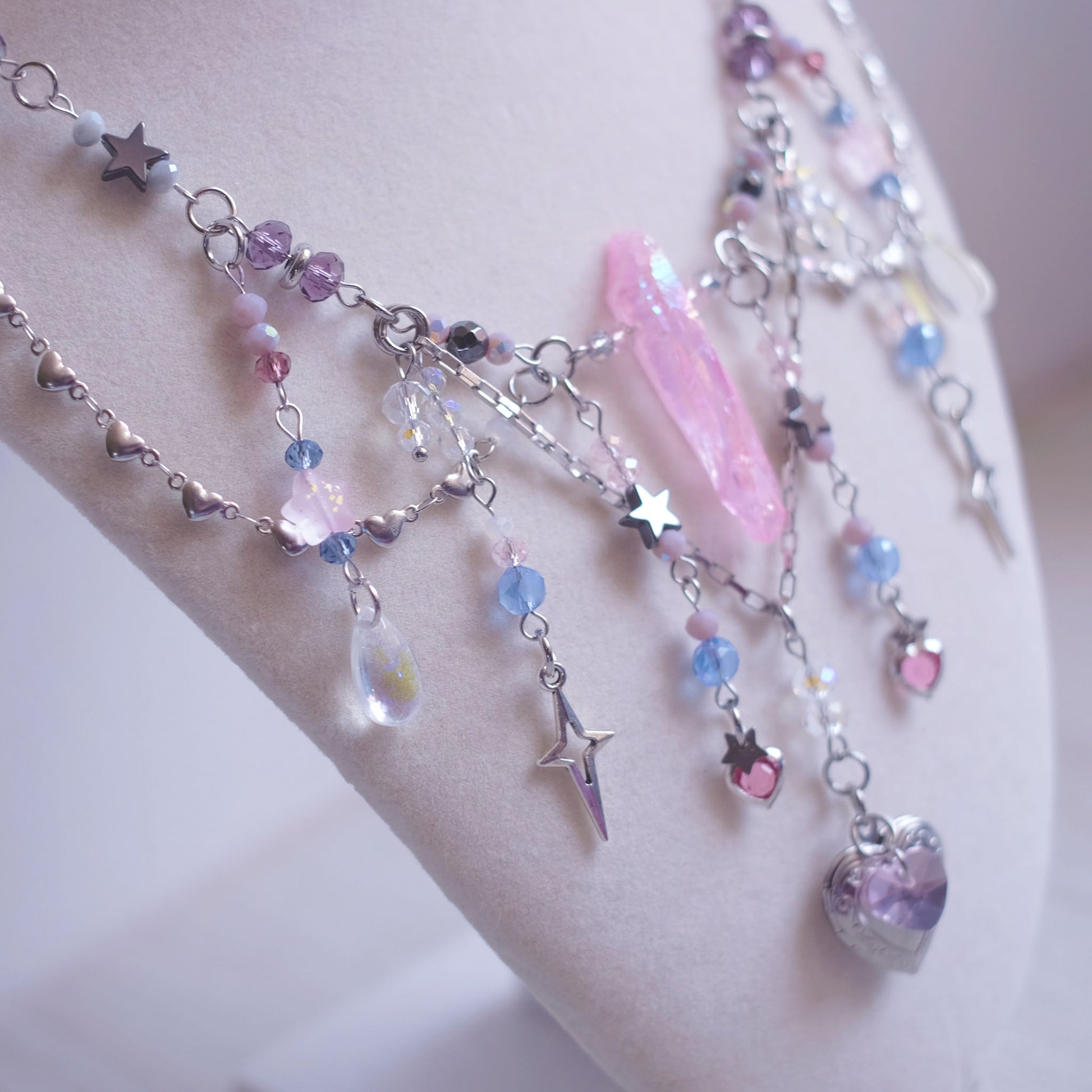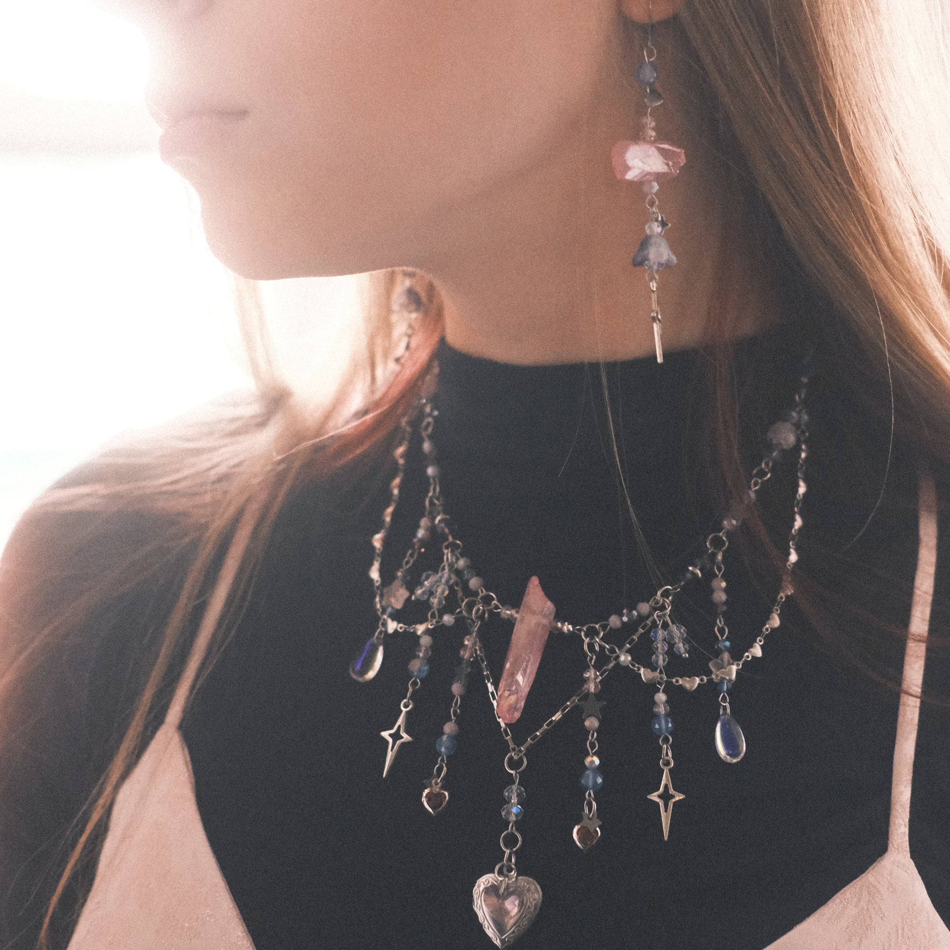 Plongez dans un monde électrisant avec ce collier parure en acier inoxydable argenté, inspiré du charisme et du charme du personnage d’Ahri dans sa version ‘‘K/DA all out’’ de League of Legends. Ce collier capture l'essence même de la célébration de l’art de la scène avec des pierres naturelles de quartz et d'hématite, reflétant la puissance et la sophistication du personnage emblématique. Chaque détail, des nuances argentées aux reflets chatoyants des pierres, évoque l'énergie vibrante et la magie de la scène. Portez ce collier pour rayonner de confiance et de style, et laissez-vous emporter par le glamour envoûtant de la pop-star Ahri.